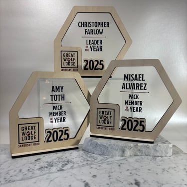 We combine laser cutting, engraving, and UV printing to produce crisp graphics, vibrant color, and dimensional pieces using materials like wood, acrylic, vinyl, and mixed materials.